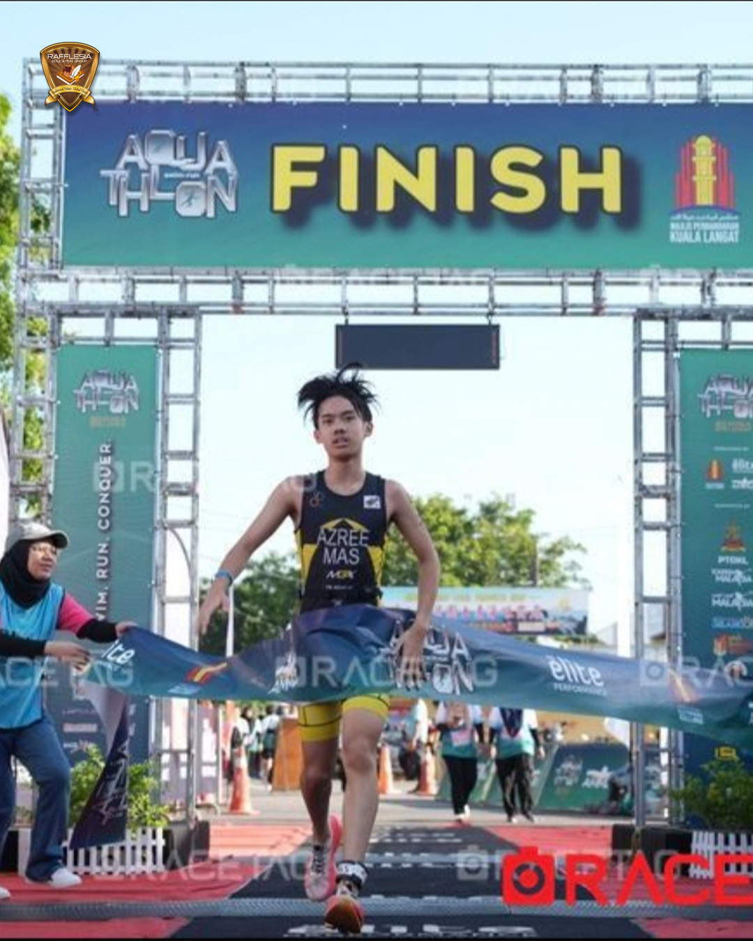 Dexter Kam Yuan Zi, Form 1 Respect, Sekolah Menengah Rafflesia, secured 5th Place in the Aquathlon Event (Boys U13–U15) at Tanjung Sepat, Kuala Langat, completing a 300m open water swim and 2.5km cross-country run, and stood out as the youngest podium finisher among the participants.