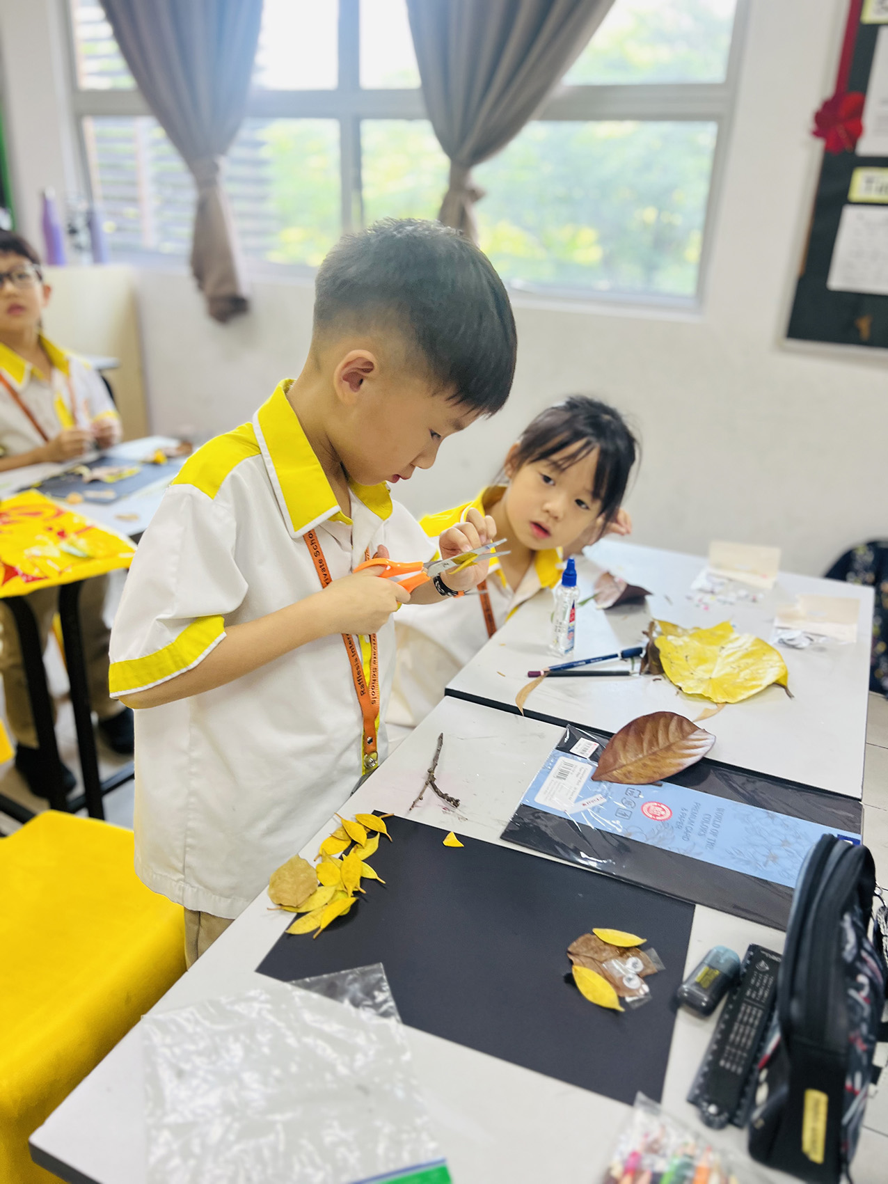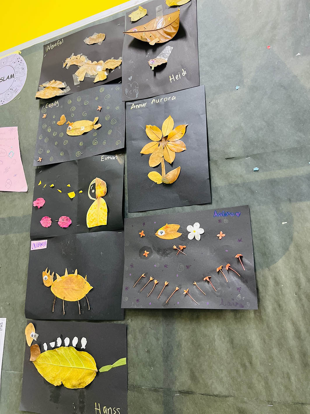 Our little explorers from Sekolah Rendah Rafflesia collected dried leaves of all shapes and colours, then transformed them into adorable leaf animals and nature scenes!