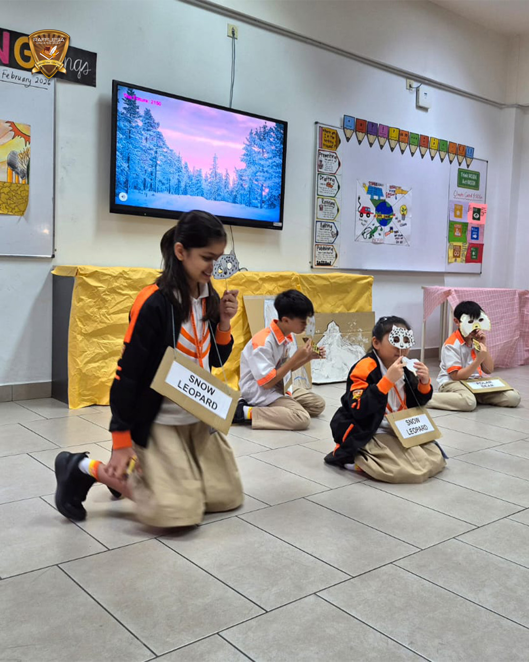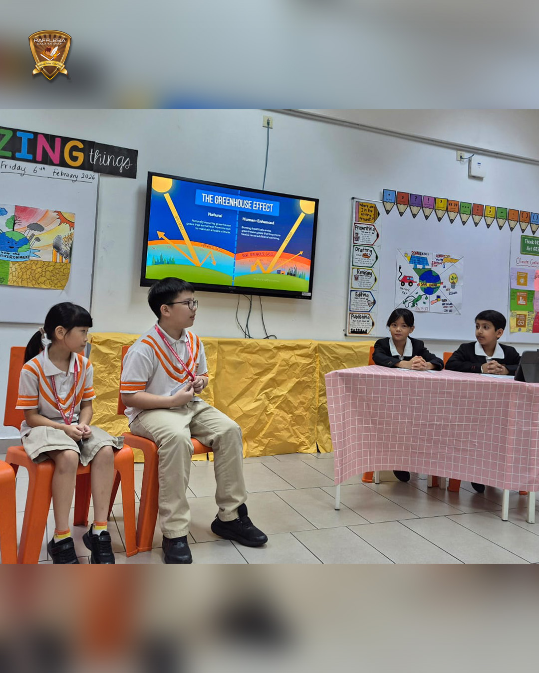 Year 5 students hosted a fun talk show, interviewing “climate experts” on fossil fuels, renewable energy, global warming, endangered animals, the Sustainable Development Goals, and climate action.
