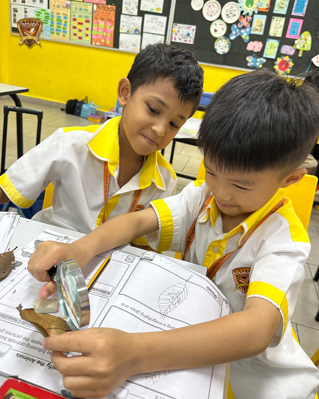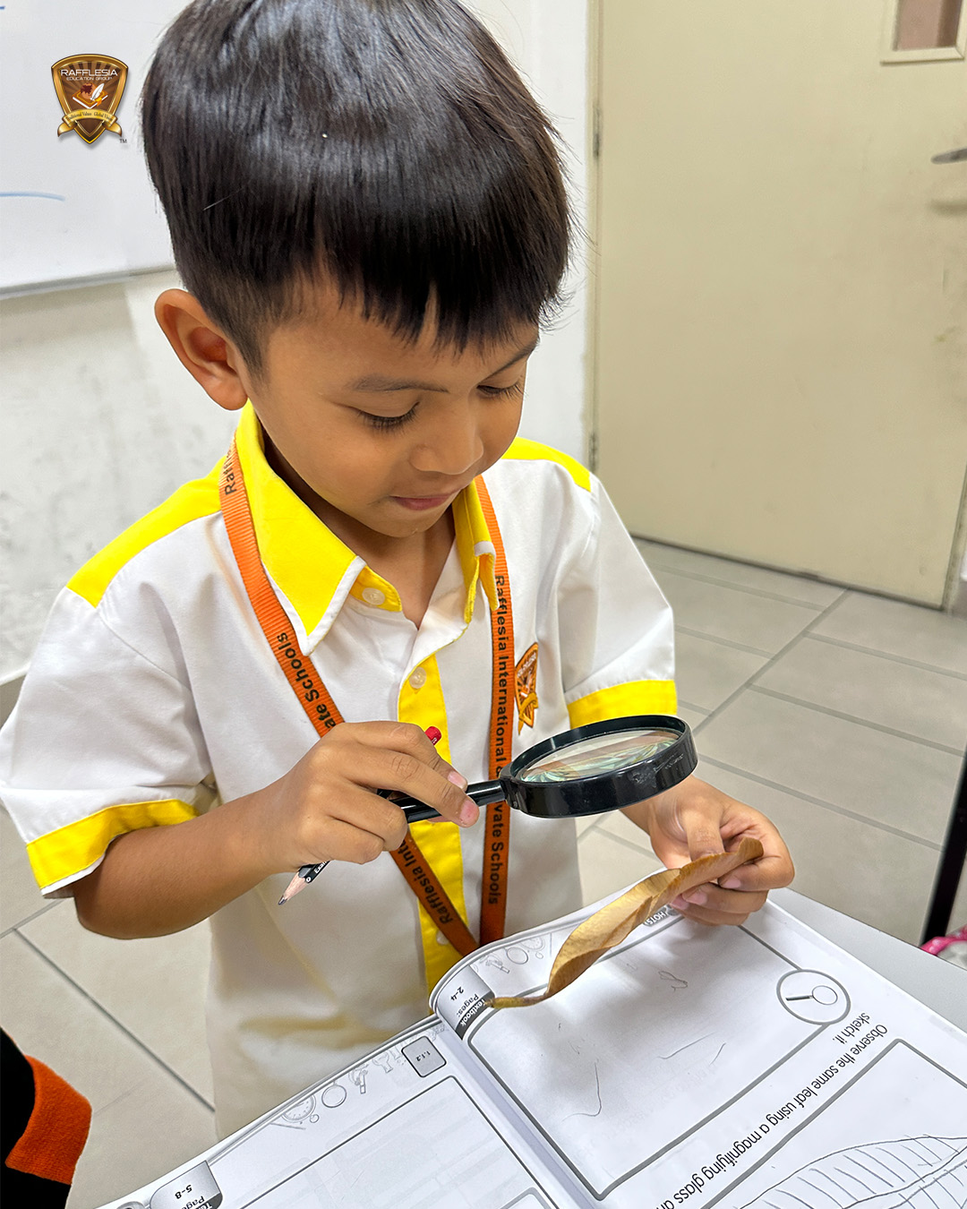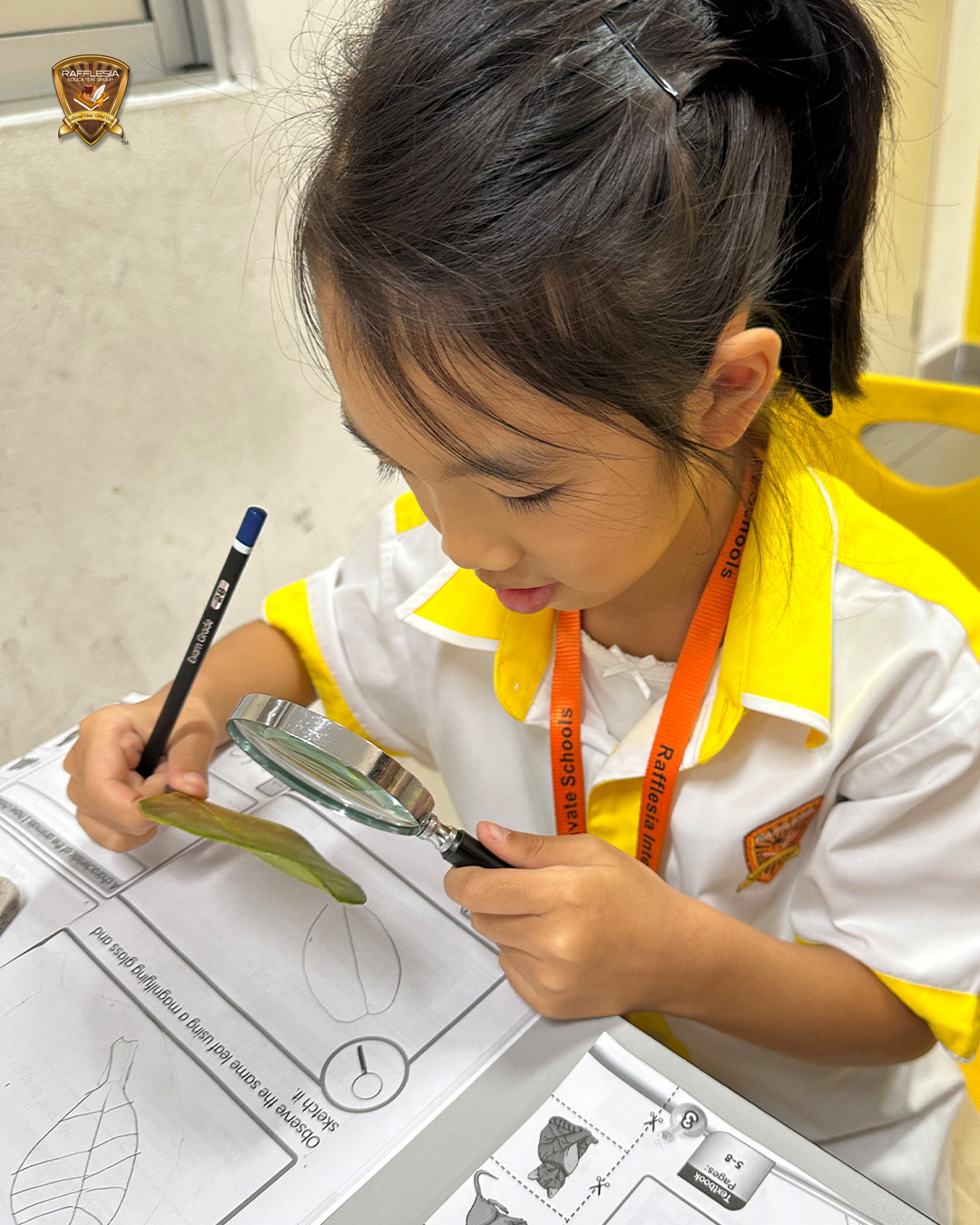 At Sekolah Rendah Rafflesia, our Standard 2 students stepped into the role of young explorers. With magnifying glasses in hand, they observed dry leaves in detail and translated their findings into drawings.